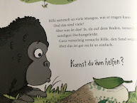 Schon im ersten Bild, in dem Rille sich auf den Weg macht Mangos zu suchen sind wir mitten im Geschehen in das die kleinen Leser durch die Frage: "Hast DU sie schon entdeckt?" direkt angesprochen und eingebunden werden. Die kleineren Kinder werden einfach auf die Mangos zeigen und "DA!" rufen während bei den Größeren oft zu erleben ist, dass sie (nach ihren Möglichkeiten) beginnen die Mangos zu zählen.